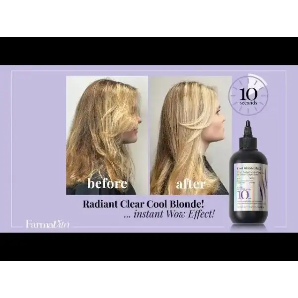 A hair treatment fluid designed to neutralize yellow or brassy tones, leaving blonde hair cooler and more vibrant.