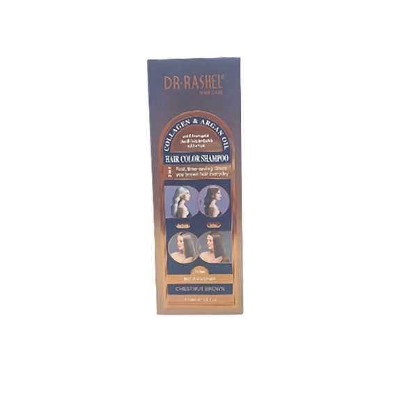2‑in‑1 hair color shampoo combines collagen and argan oil for gentle color enhancing in chestnut brown, with nourishing shine and moisture.