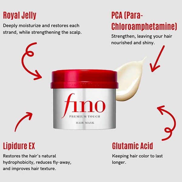 Fino Premium Touch Hair Mask by Shiseido is a rich, deeply nourishing hair treatment that repairs dry, damaged hair. Infused with royal jelly, lipidure, and PCA, it restores moisture, strengthens hair strands, and leaves hair smooth and shiny.