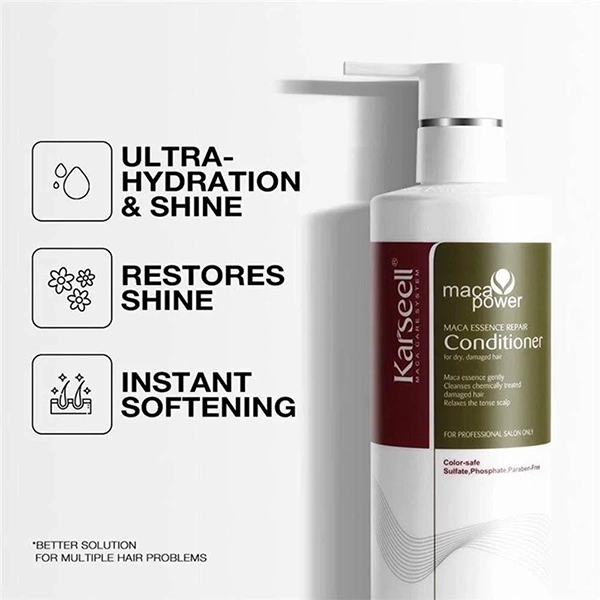 KARSEELL Maca Powder Conditioner is formulated with Peruvian maca root extract to deeply nourish, strengthen, and restore damaged hair. It improves elasticity, reduces frizz, and leaves hair soft, smooth, and more manageable.