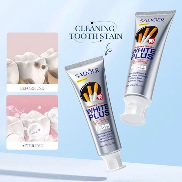 Sadoer Smokes Stains White Plus Toothpaste is formulated to effectively remove stubborn stains caused by smoking, tea, and coffee. Its whitening agents help restore the natural whiteness of teeth, while the refreshing mint flavor ensures long-lasting fresh breath.