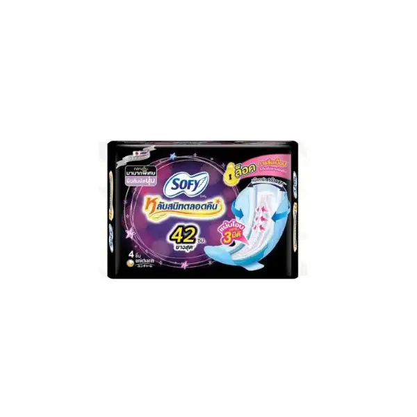 SOFY Comfort Nite Anti Bac Sanitary Pads are designed for overnight use, featuring a 42.5cm length for full back coverage. Equipped with Motion-Fit technology, they adapt to your body's movements, preventing back leakage. The Anti Bacterial sheet reduces bacteria growth that causes odor, ensuring a ...