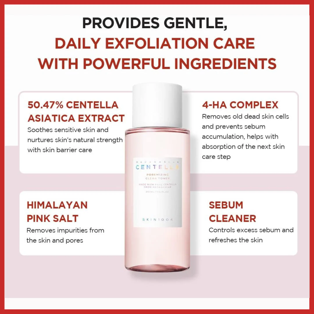 A clarifying toner infused with centella asiatica extract to refine pores, remove impurities, and soothe skin. Ideal for oily and combination skin.
