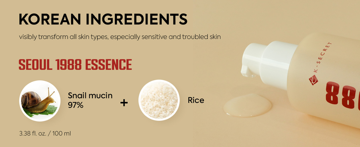 K-SECRET Seoul 1988 Essence – Snail Mucin 97% + Rice – 100 ml