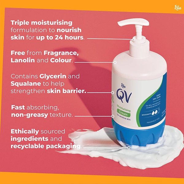 QV Moisturising Cream is a rich, protective cream designed to hydrate and replenish dry, sensitive skin. Containing 10% glycerin, it effectively seals in natural moisture, making it suitable for conditions like eczema, psoriasis, and dermatitis. The cream is free from fragrance, color, lanolin, a...