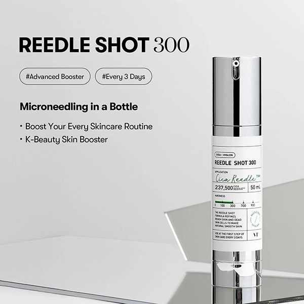 VT Cica Reedle Shot 300 is an advanced skincare essence that utilizes microneedle technology to enhance the delivery of active ingredients into the skin. This formulation aims to improve skin texture, elasticity, and overall radiance.