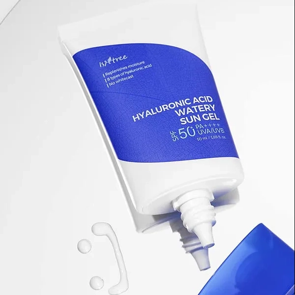 Hydrating gel sunscreen rich in hyaluronic acid and niacinamide, offering SPF 50+/PA++++ protection with a satin-dewy, non-greasy finish.